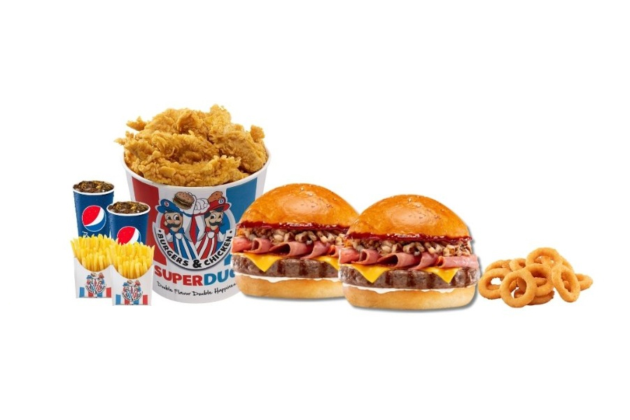 2 büyük boy Smoked Burger, 2 but, 8 hot shots, 6 kanat, 1 büyük boy patates, 2 sınırsız içecek, 6 soğan halkası (hediye)